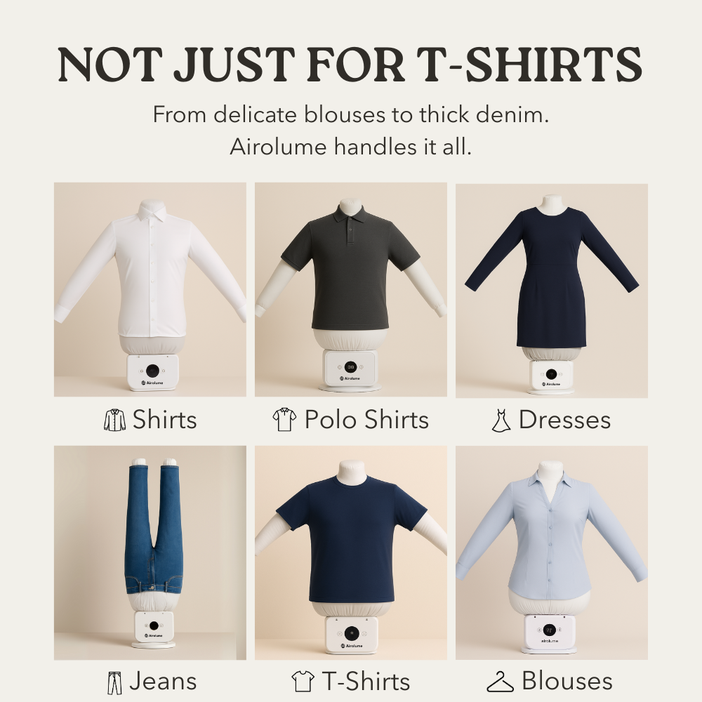 Airolumes gentle airflow technology paired with adjustable temperature and time settings lets you iron most clothing and fabric types, without any heat damage.